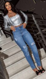 Calça Jeans Mariane com Elastano Modelagem Justa com Cinto