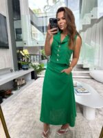 Conjunto Mila em Viscose com Elastano Risca de Giz