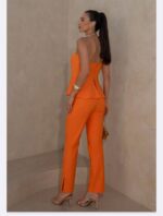 Calça cintura alta, sem bolsos e fenda na barra laterais.
