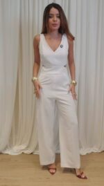 Possui vazado nas laterais, zíper posterior e 2 bolsos sobrepostos atrás;