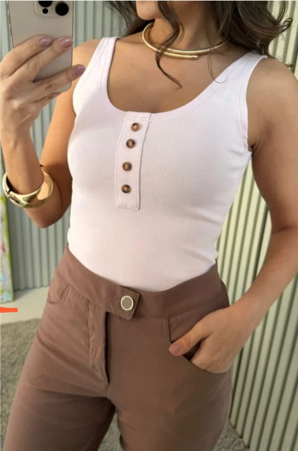 Início Blusas Regata Canelada com Botões Frontais