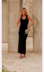 Início Vestidos Vestido Canelado com Retilinia na Gola e Cavas